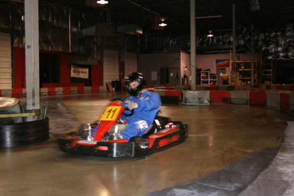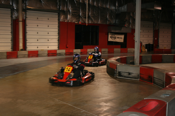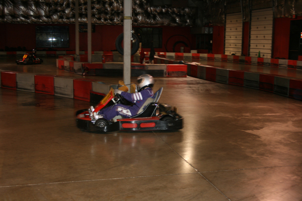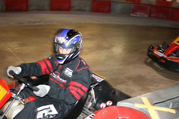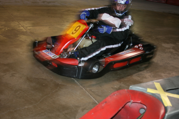 December 13, 2008 - New feature tonight called The Hot Seat, which is a kart equipped with 2 on-board cameras. Whoever turns the fastest lap time in each race goes in the Hot Seat for the next race, provided they haven't driven the Hot Seat yet that night. Footage below (more to come). Will check the volume settings next time for the front camera.